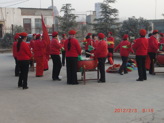 2012年2月3日,鞏義市老年舞龍隊20多名英姿颯爽的婆婆們,穿著光鮮統一的表演服,熟練地打著鼓、舞著龍在泰達廠區和所有的泰達工作人員一起恭賀專業生產
