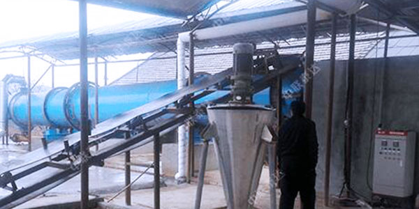 有機肥烘干機可將高達70%-80%含水量的禽畜糞便一次直接烘干至13%的安全貯藏水分,整個過程在封閉系統內進行,從而減少干燥過程中對環境的污染。設備主要由熱源、上料機、進料機、回轉滾筒、出料機、物料破碎裝置、引風機、卸料器和配電柜構成;脫水后的濕物料加入干燥機后,在滾筒內均布的抄板器翻動下,物料在干燥機內均勻分散與熱空氣充分接觸,加快了干燥傳熱﹑傳質。在干燥過程中,物料在帶有傾斜度的抄板和熱氣質的作用下,至干燥機另一段星形卸料閥排出成品。
