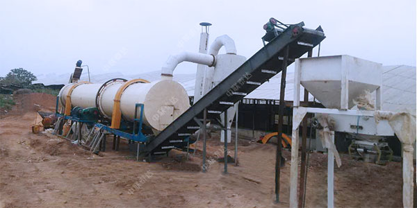 該烘干機采用直接干化技術,將沼氣燃燒室產生的熱氣與待處理的原料直接進行接觸混合,蒸發其中的水分,殺滅其中的有害成分,最終得到干肥料產品。
